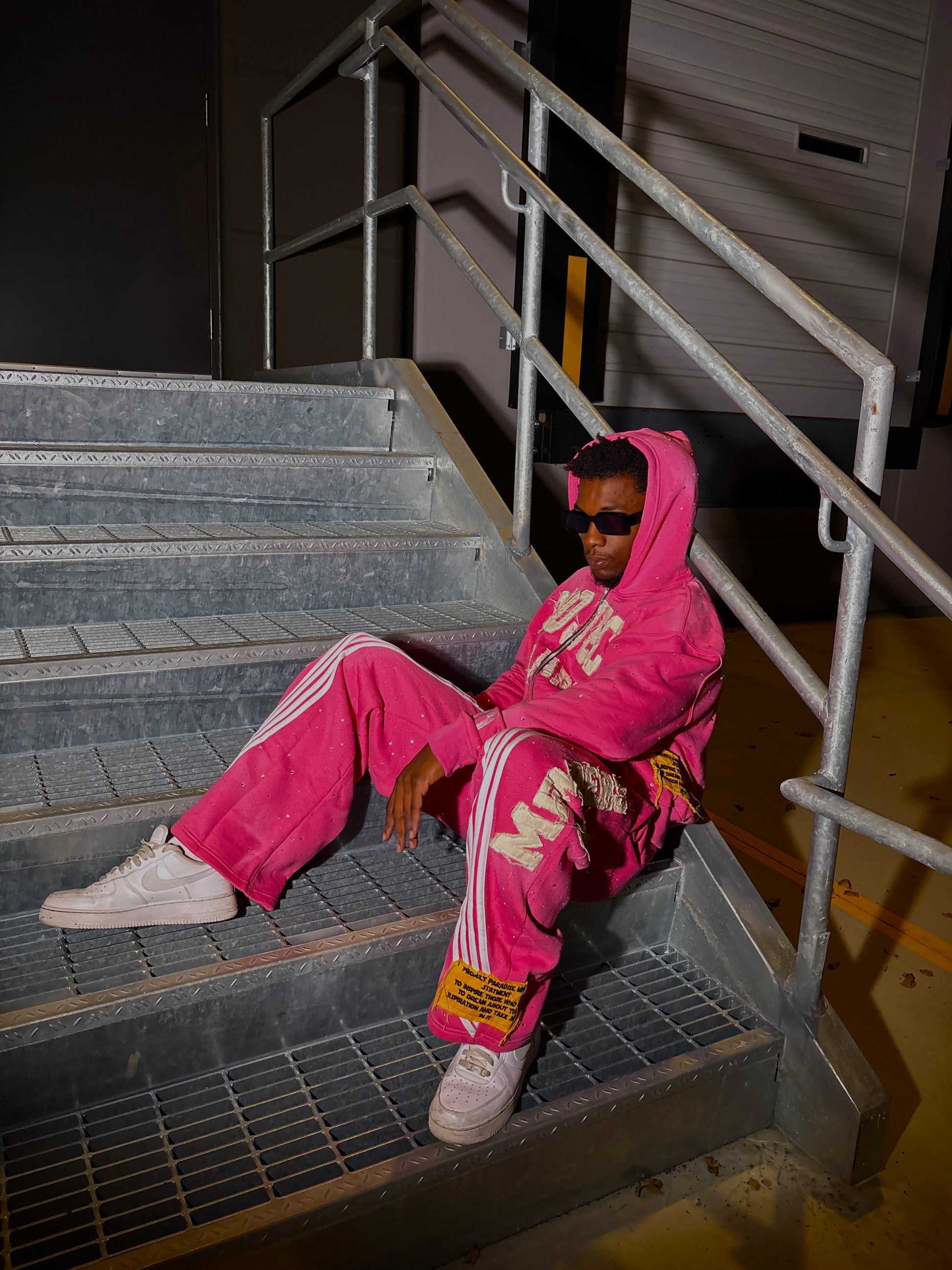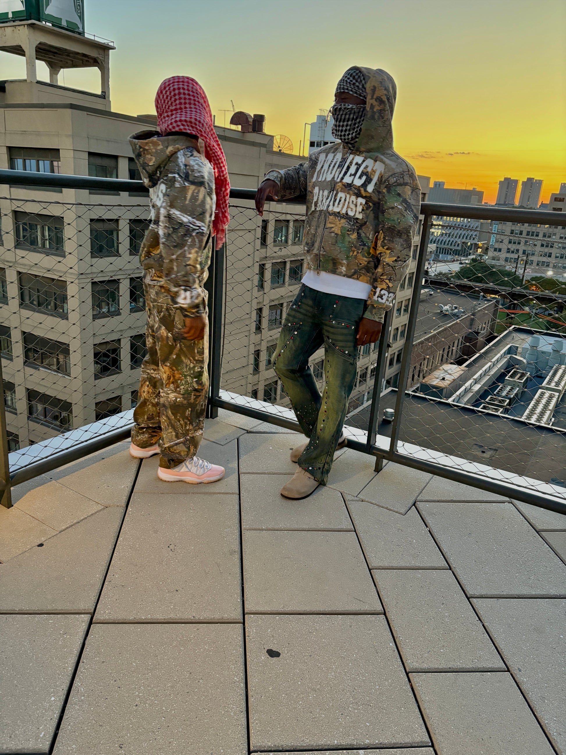 - Boxy fit rhinestone and distressed embroidery with our brand motto patch.